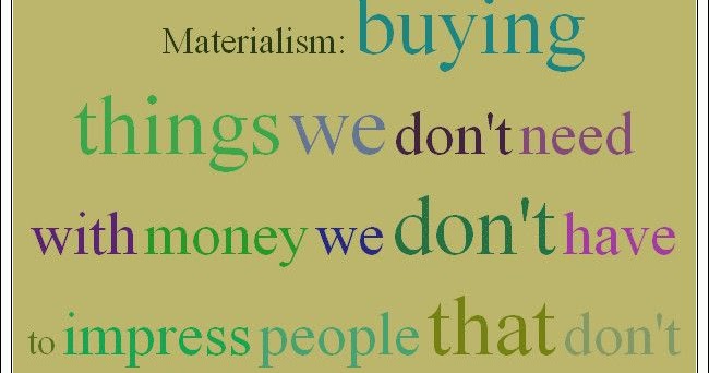 It's okay to have different values than others. Move it and feed it fresh food. The materialistic person prioritizes money and possessions, as well as social status and popularity, which is always expressed through money and owning things.